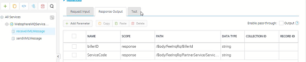 You can delete the default parameters and add the custom parameters and XML path or JSON path to receive the response from IBM MQ server.