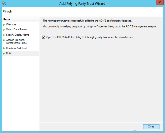 From the Actions pane, click the Add Relying Party Trust. The Add Relying Party Trust Wizard appears.