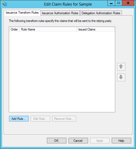 Click Add Rule. The Add Transform Claim Rule Wizard dialog appears.