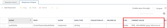 inputDateFormat~outputDateFormat) in the response tab.For example, if a back-end sends the date as