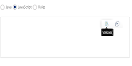 If you do not want to validate the JavaScript code for the Postprocessor, and want to save the operation, do not click Validate. * Select Rules to open a text box. Here, you can write rules for the postprocessor.