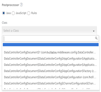 Select Java, and from the Class list, select a postprocessor class. You can select one or more classes.
