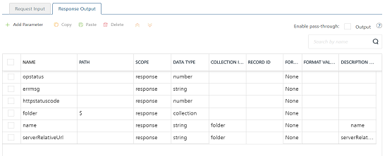 Click the Response Output tab to configure the fields of the table for displaying the data.