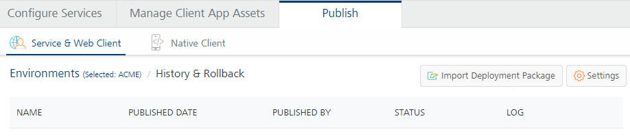 By default, you can view the last two snapshots of an app in this screen and the last published snapshot will be marked as Active. Click Settings to change the number of snapshots you can view.