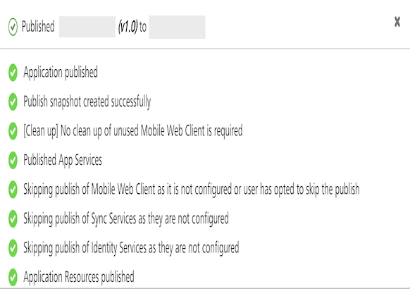 However, a tick mark is attached to the stage that indicates publish is successful. While accessing the app in runtime, the system skips non configured services automatically.