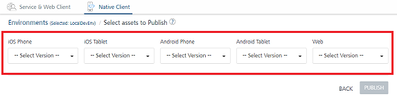 -- Select Version --from the drop-down list for platforms, and click Publish, the system removes all versions of that client binaries if present in Volt MX Management runtime.