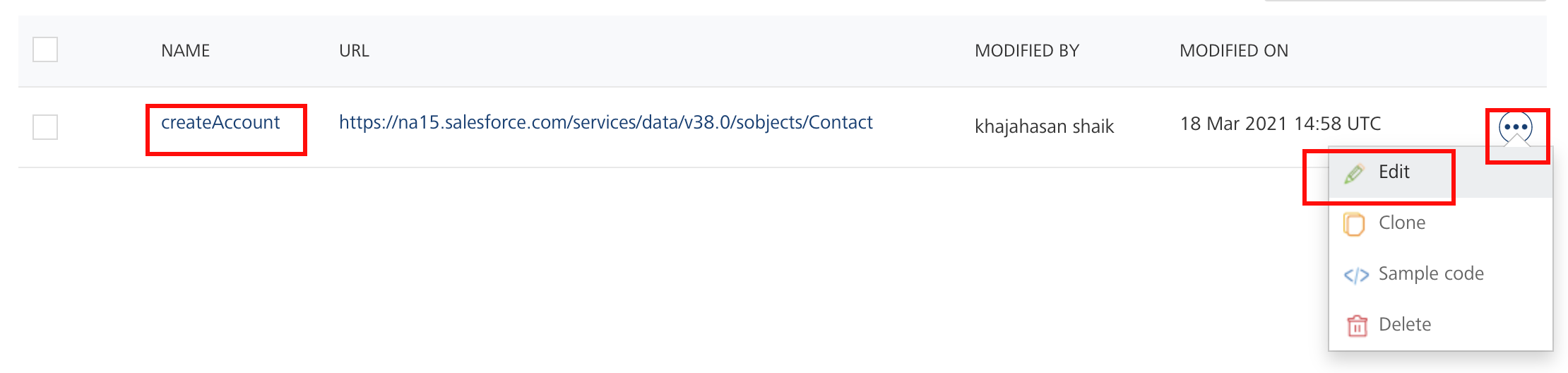 - The selected operations are added to the Operations List section and the new Salesforce service is added to the Integration page.