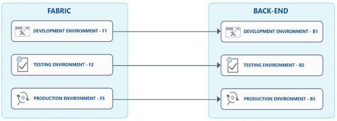 Consider a scenario in which your app uses different back-end environments for different Foundry environments. For example: If your app runs on Foundry environment F1, it must connect to the back-end environment B1; and if the app runs on Foundry environment F2, it must connect to back-end environment B2.