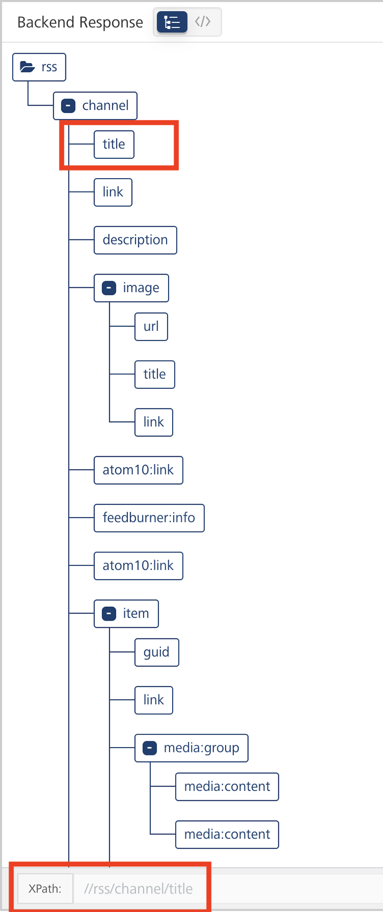 The following example details a sample backend response, and XPath configurations and Output Result based on the XPath configurations