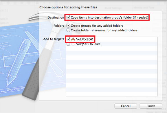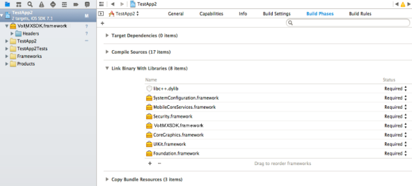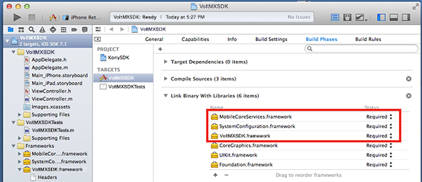 VoltMXSDK.frameworkto your Framework group in Xcode project.