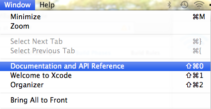 In Xcode, click Window menu, and then click Documentation and API Reference.