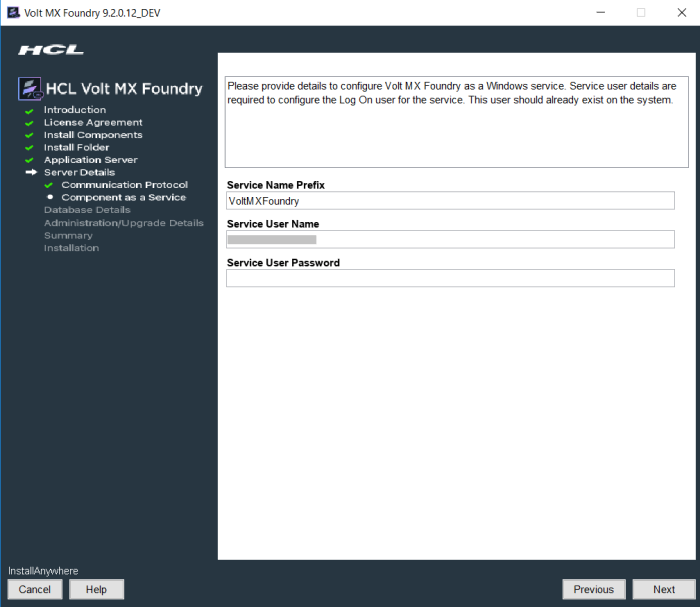 The system creates the following database:<prefix>idconfigdb<suffix>. - Integration Services - To install Volt MX Foundry Integration Services, select the Integration Services check box.