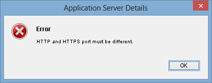 If you provide the same port numbers for HTTP and HTTPS, the following alert is displayed: