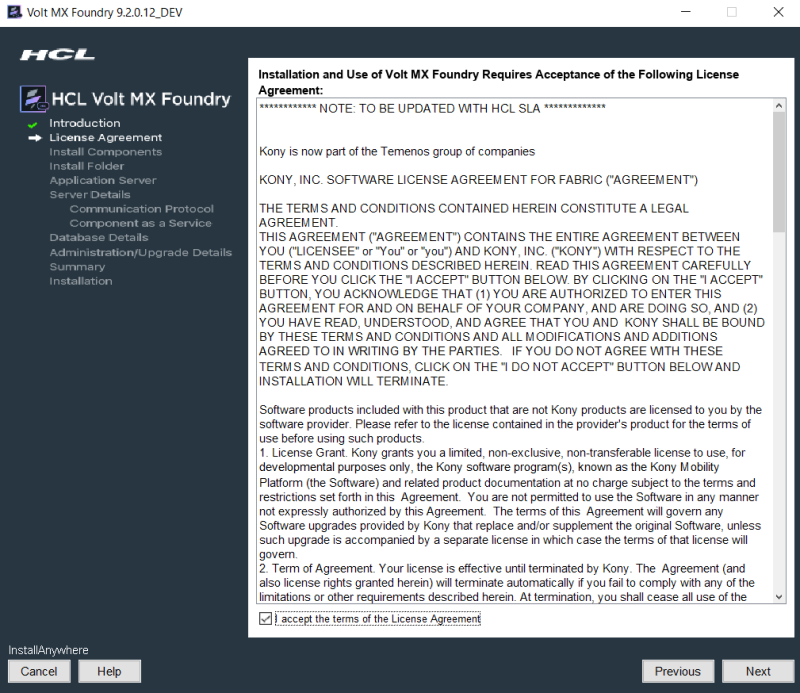 Scroll until end of the screen, and then select the "I accept the terms of the License Agreement" option.