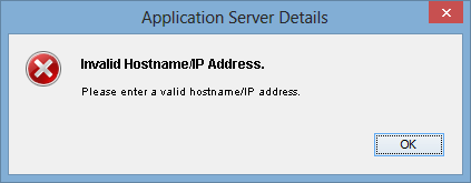 If you provide an invalid hostname/IP address, the following alert is displayed: