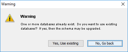 One or more databases already exist. Do you want to use existing databases? If yes, then the schema may be upgraded.shown below: