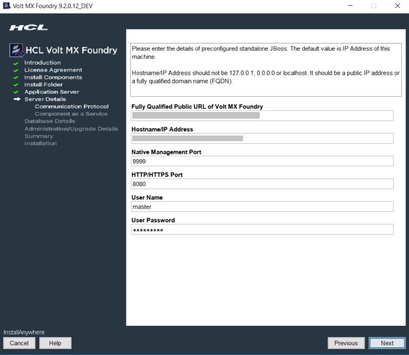 Master Node Hostname/IP Address: Enter public Hostname/IP of JBoss master node. Ensure that you have access to JBoss master node from your installation system.