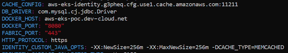 CACHE_CONFIG: <Identity Memcached cluster hostname:port> - Append the following -D parameter to the