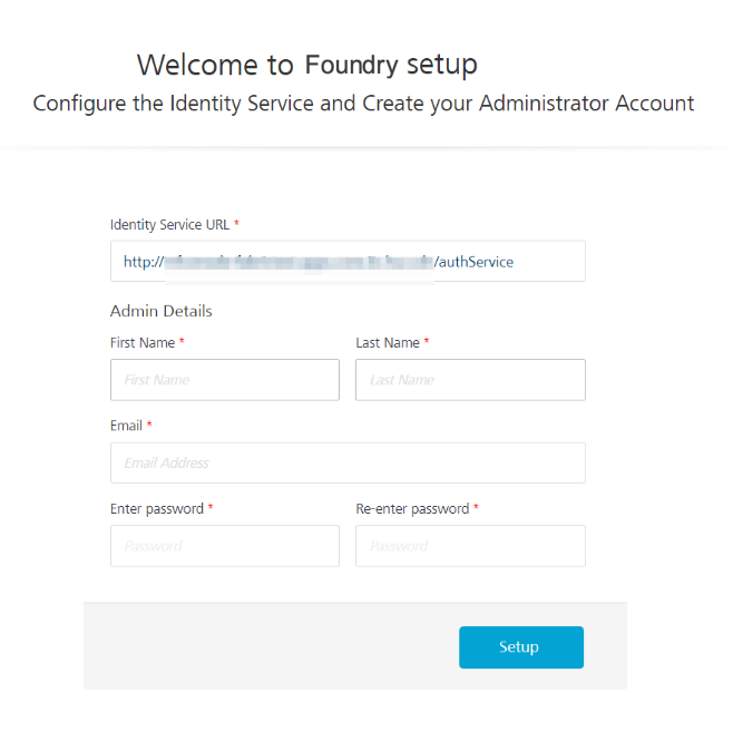 2. After you launch the Foundry Console, create an administrator account by providing the appropriate details.