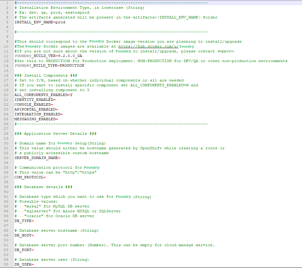 - DB_PREFIX – This is the Database server prefix for Volt MX Foundry Schemas/Databases.