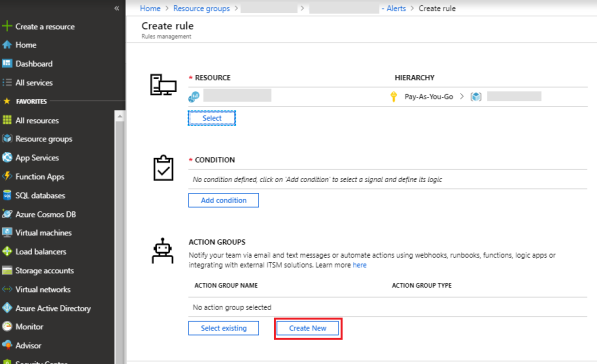 * Select the resource for which you want to configure the alert.