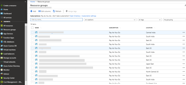 All existing resource groups appear.
