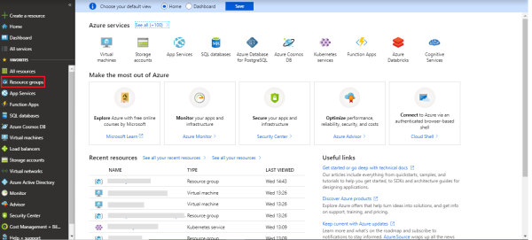 2. Select **Resource Groups** from the left navigation pane.