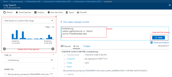 In the Log Search page, you need to execute the following queries to fetch the logs.
