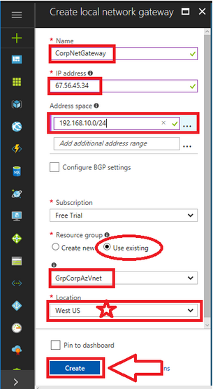 - Name: Provide a name that is distinct from the Azure Gateway.