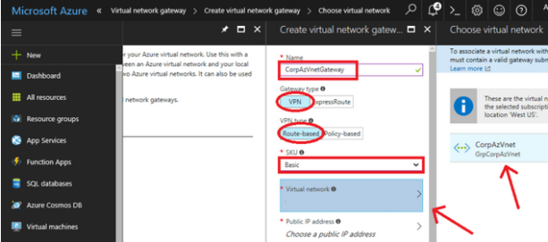 Route-based VPN. - SKU: Select Basic, as it fits the requirements of most SMBs (Server Message Blocks).