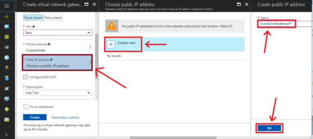 The following steps help you to implement a VPN connection between Microsoft Azure and an On-Premise Network: