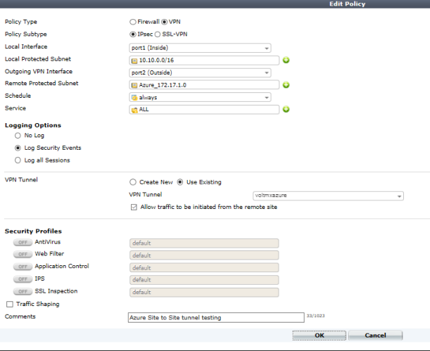 Site-to-Site tunnel between Microsoft Azure and On-Premise Network with FortiGate Firewall