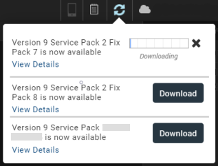 When new updates are available, Volt MX Iris displays a notification and starts the download process. The progress of the Fixpack or ServicePack download appears in the update section of the notification bar.