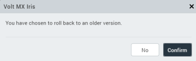 Note: When you upgrade to a newer version, Volt MX Iris stores the version information of the previous version. When you select the Roll Back To Previous Version option, the stored version information is used during the rollback process.