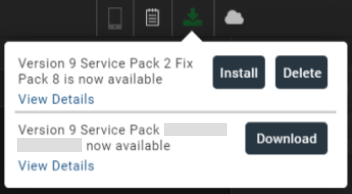 When new updates are available, Volt MX Iris displays a notification and starts the download process. The progress of the Fixpack or ServicePack download appears in the update section of the notification bar.