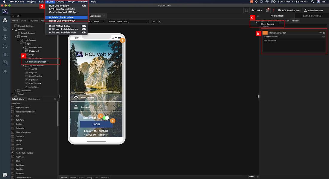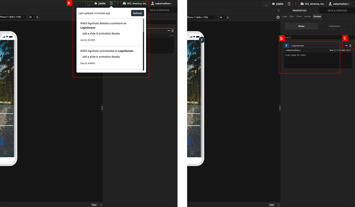 Touch screen of Iris App Preview with 2 fingers to provide comments.
