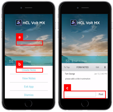 Select the ‘create note’ option to provide feedback and comments on the particular form on the mobile application preview.