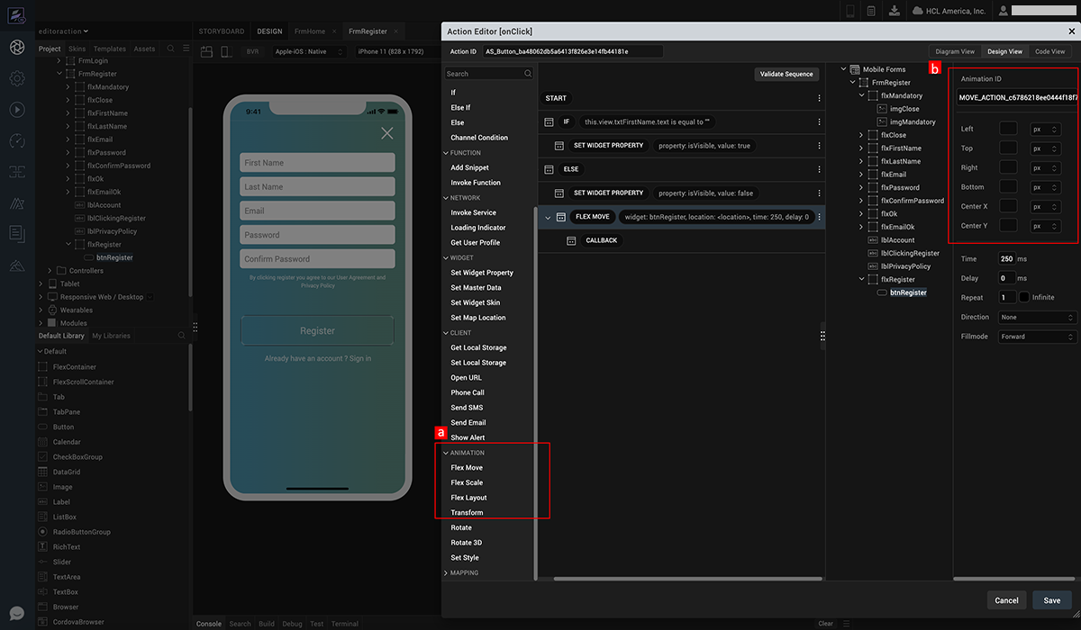 Click on Flex Move Animation Action and associate to the Action Sequence.