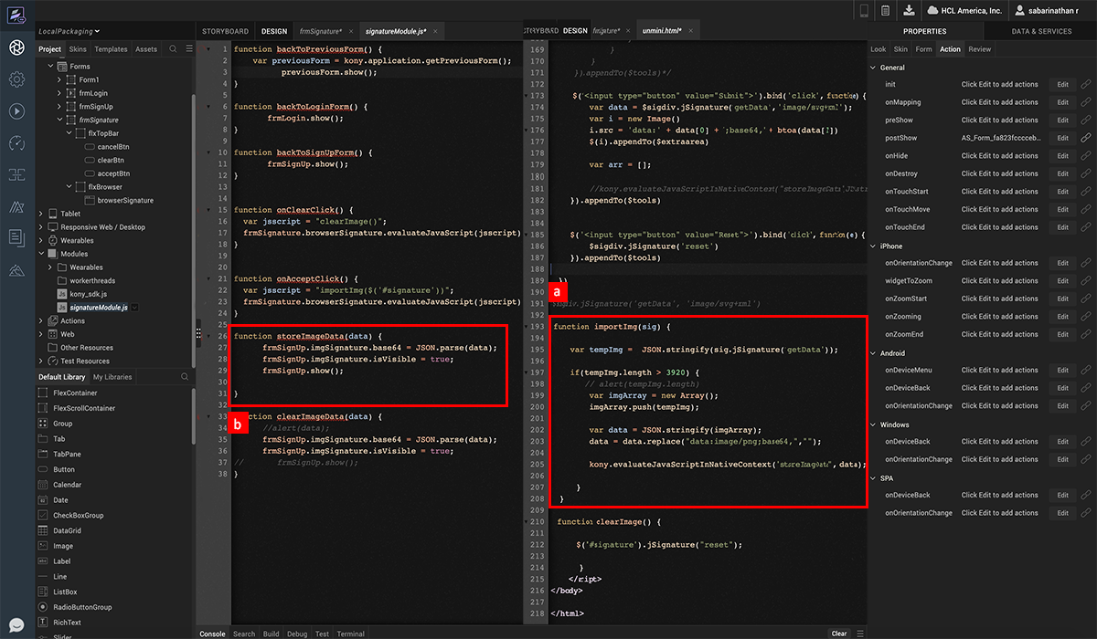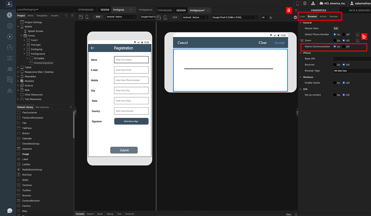 In the Local HTML file, after capturing the required data, invoke ExecuteInNativeContext to pass data and control back to the native context.
