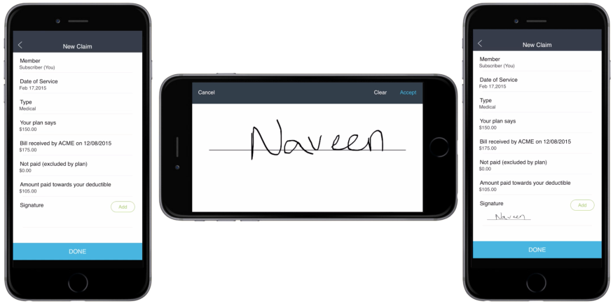 On clicking Add in the New Claims form we are taken to the Signature Capture form.