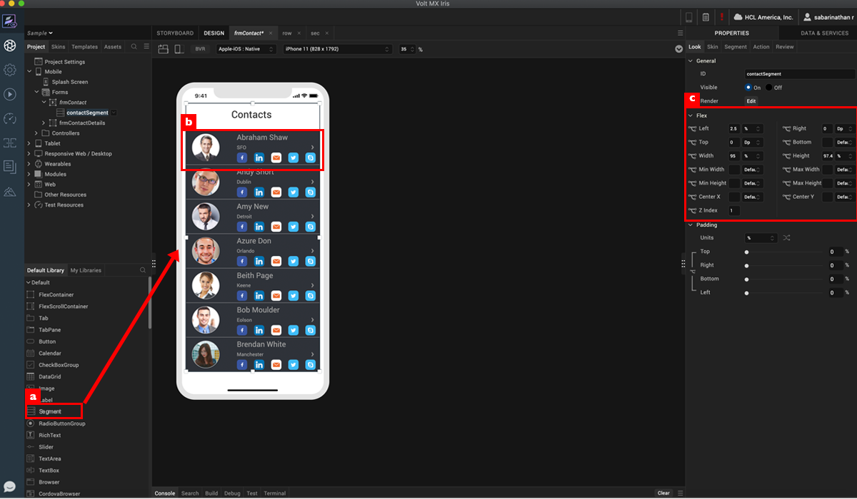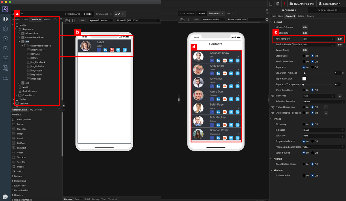 Drag widgets and skin them to design the segment row.