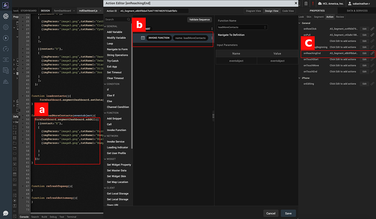 Add interactivity to the segment by using the onReachingEnd scrolling event.