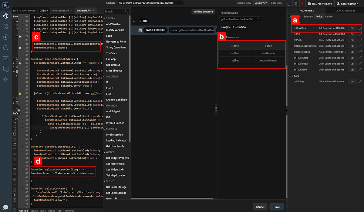 Define onRowClick event of the segment widget and pass row and section index to callback.
