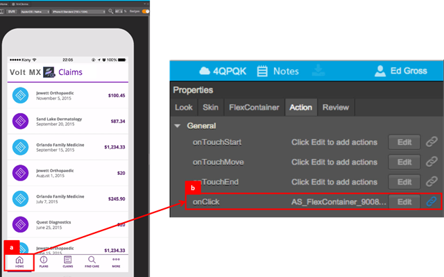 Select the On-Click event from the properties to define the action sequence to be applied.