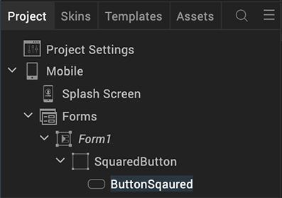 - In Design view, click Form1 > SquaredButton. We will take the example used earlier to create the navigation from Form1 to Form2, on the click of the button in Form1.