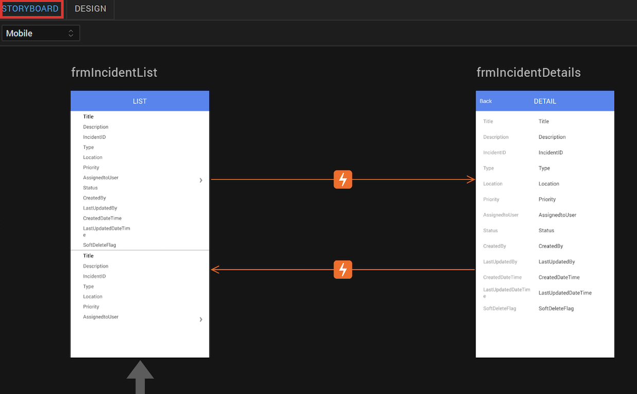 From Volt MX Iris V9, while designing your app, you can develop a storyboard by using Storyboard view. Storyboard view in Volt MX Iris is a progressive way for you to quickly get the overall picture of an application. You can also use this feature to define simple navigation actions between various forms in a project.