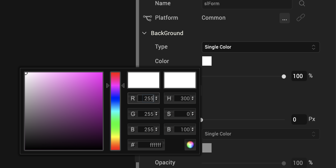 - Background color of the form/flex changes to a lighter shade when we have the opacity set for Form/Flex which is present as root widget in form.