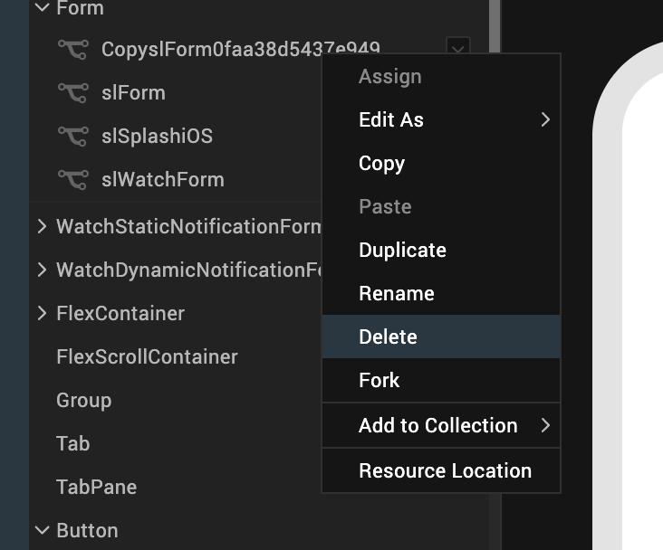 To delete a skin from the project library in Volt MX Iris, do the following: