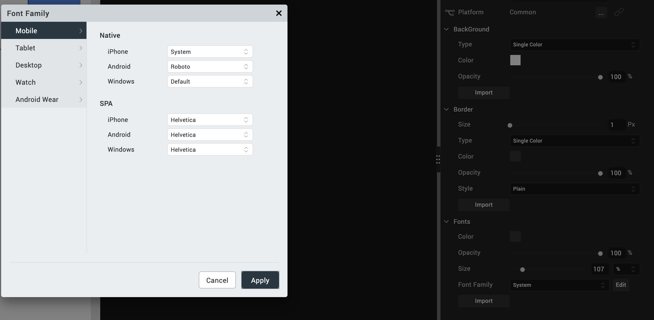 - By default all the widgets (except widgets that have background type as Multi-Step Gradient), will have a Common skin. Changes made to the Common skin will be applied across the platforms.