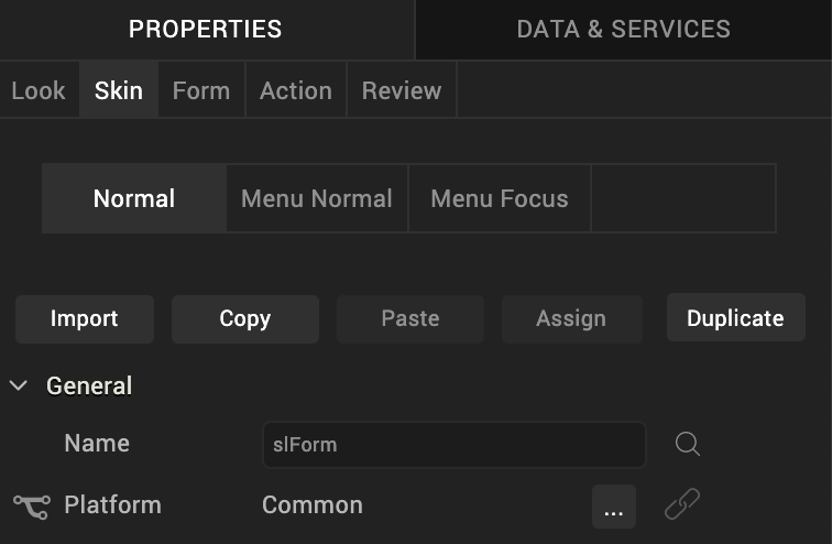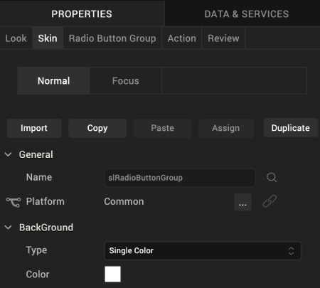 Note: The paste function can be applied across the widget states. For example, a Normal state skin of a Button Widget can be copied and pasted to the Focus skin state of the Button Widget.